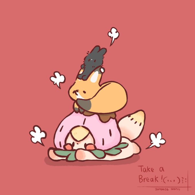 休憩! 体をリラックスしよう! 無理はしないでよ! . p2は気になる子 この子わかいい 胡麻団子みたいな顔をしてる(^_^) #イラスト #絵 #絵 #絵描き #かわいい #メーとスズメの友達