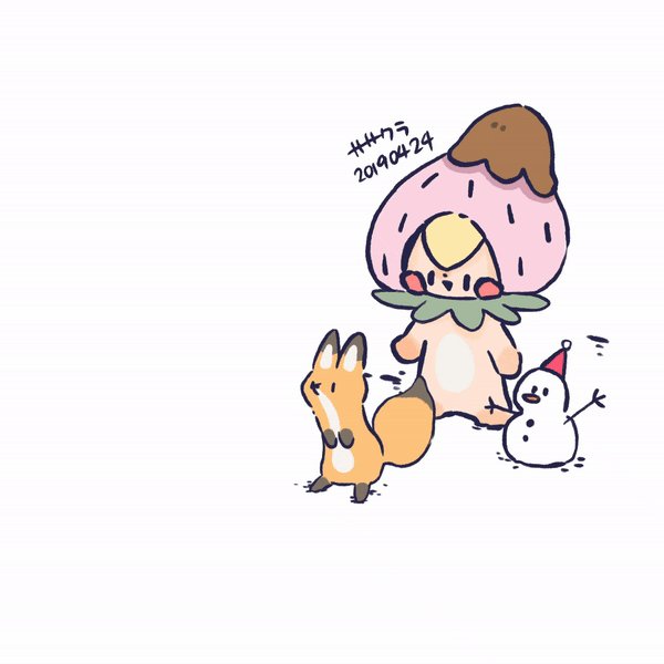 メーちゃんとキツネたち #イラスト #絵 #絵描き #かわいい #癒し #いちご #キツネ #メーとスズメの友達