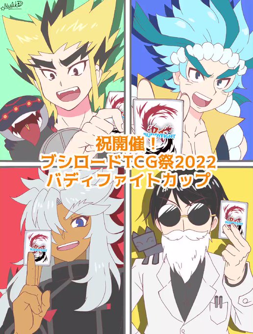 #バディファイト #ブシロードTCG祭2022 開催おめでとうイラスト!!✨✨ ※推しを詰めまくりました!w 今日参加された皆様もお疲れ様でした🍵! 次回は百鬼夜行のデッキを持って大会という晴れ舞台に…!! また会える日まで🙌