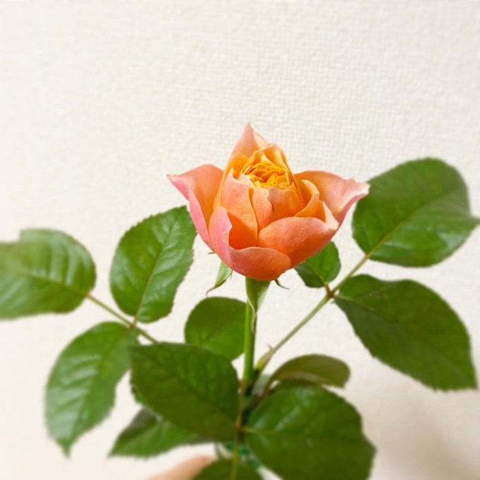 久しぶりおうちの花を女の子化🌹 ピンクとコーラルのグラデーションのバラでした。今ドライフラワーにしてるところです( ˘ω˘ )