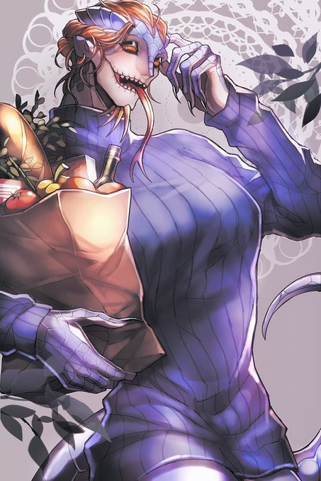 ざっくりなんですけど、描き方のポイント的には ①輪郭(人間描く時と同じ要領) ②ネコミミを意識したようなトサカ ③アイシャドウ ④口の模様? でしょうか…結構デフォルメしてるので公式寄りでは無いです… 🦎は良い意味で描き手の癖や個性が出やすいと思ってるので是非模索してみて下さい!👌✨