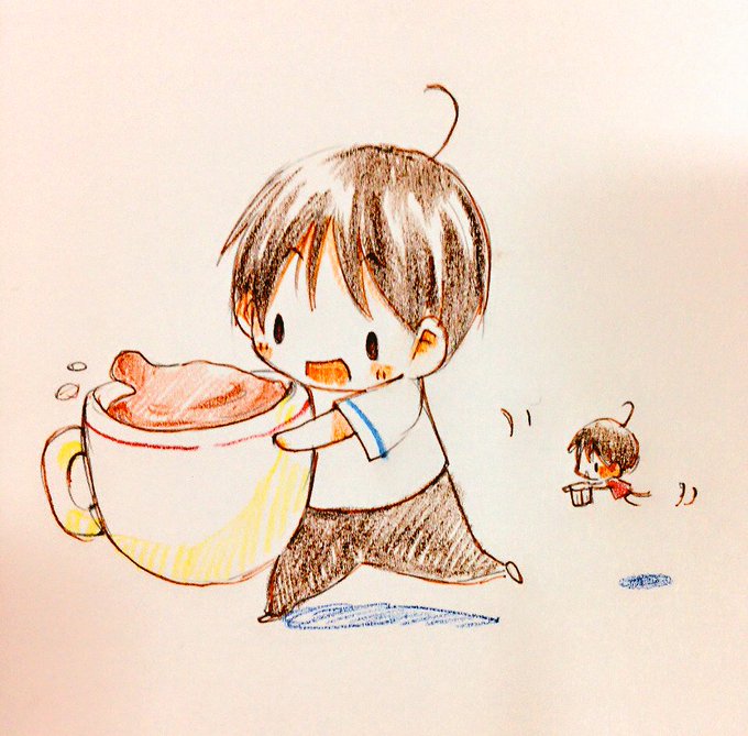 いづき「おつかれ さま です コーヒー か こうちゃ いかが ですか」 みにちびいづき「ぷわわー(ミルクを はこんで います)」 いづき「そうそう しちがつ ついたちに おれたちから おしらせが あります よろしく なんです!」