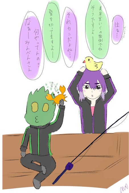 カニで髪切ってるミンベンさん💚と節約するまでアヒルを買うしるこさん💜