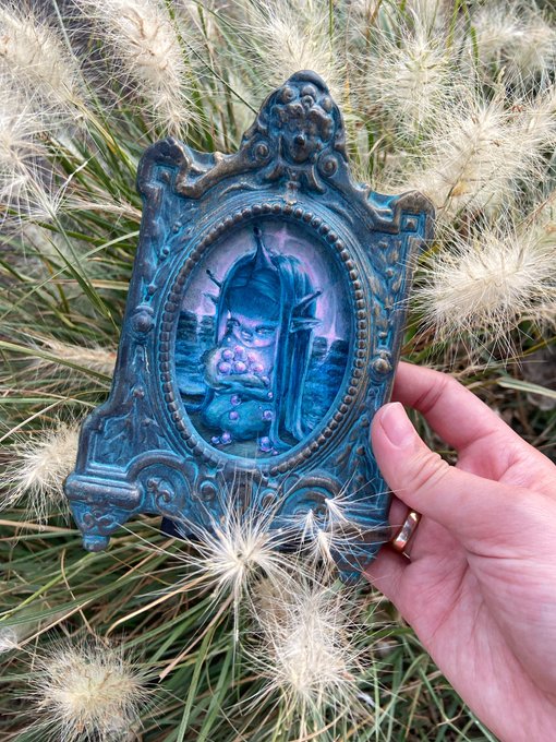 A super small painting of Aquarius’ Blessing I did for this vintage frame I found. I’m currently collecting vintage frames and planning pieces to go with them