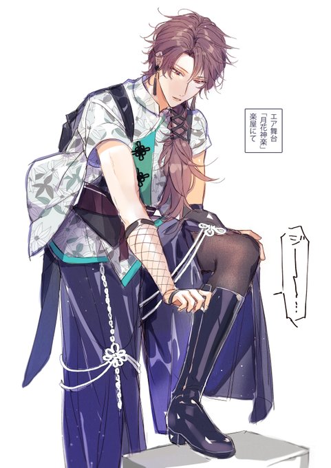エア舞台月花の衛さん。 楽屋でブーツと格闘中。