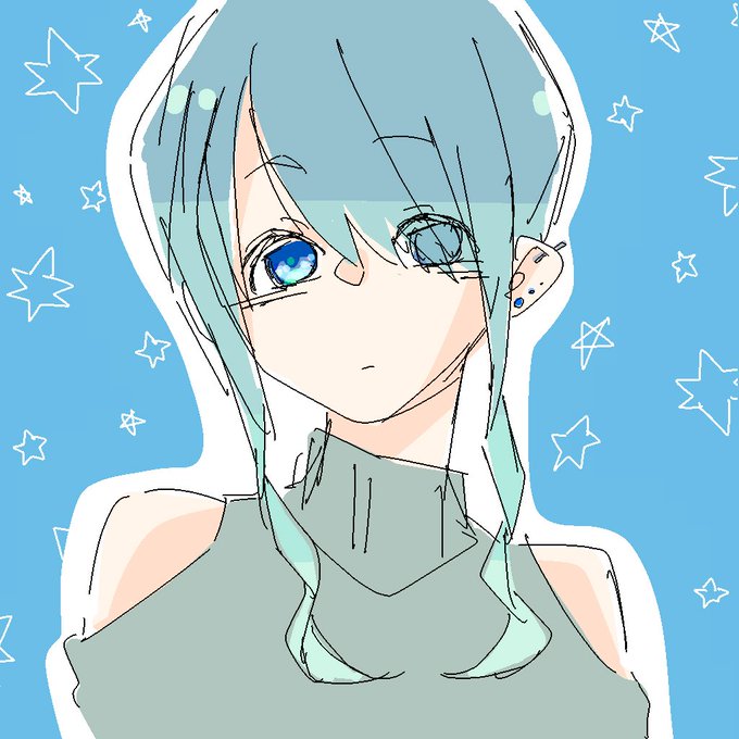 いったゃ @psychozombs2ie いったゃだけ版権じゃなくてごめん…いったゃはこういうイメージです、青とお星さま ありがとうでした!!