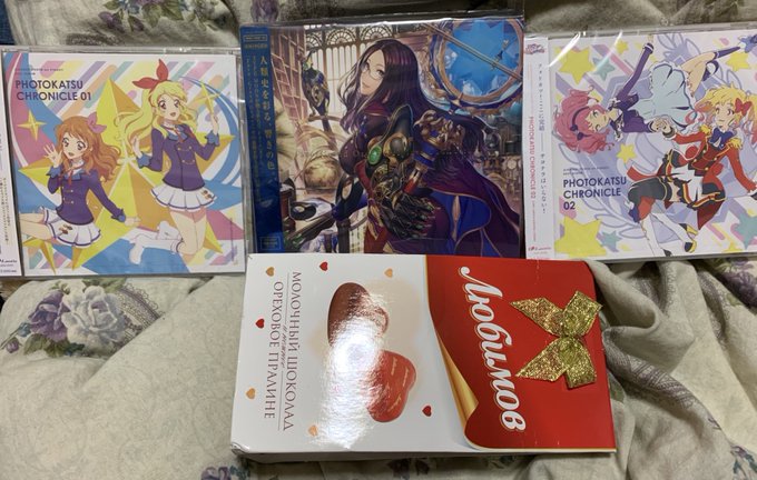 #アイカツ #fgo 今日のゲットー。 これで、フォトカツの曲もモーラ!We are STARS!‼︎!がいいのよー。泣けるんだぁ。 ちなみに、真ん中は言わずと知れた、 fgoのサントラ。そして、チョコはみんな大好き!ウズベキスタンのチョコ。ウズベキスタンの、チョコ。