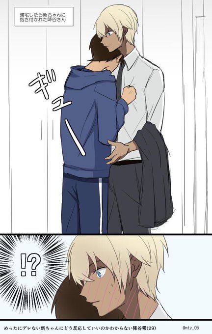 降新 距離がめちゃくちゃ近い捜査中の二人。新ちゃんは資料に夢中だけどふるやさんは捜査どころではなく今すぐ手を出したくて仕方ない状態😇