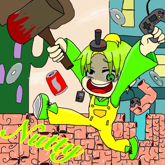 ひぇぇぇえ やっと出来た😂😂😂 ナッティのゲーマー回好きだ(((( 背景まともに描いたの初めてかも( ˇωˇ ) 内蔵テトリスしんどかった😇😇😇 #htf擬人化