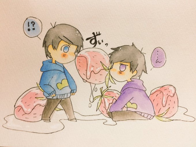 「甘く、甘く、甘い」 アンケートお題のです アナログですが( ˘ω˘ ) カラ松一松で練乳いちごです