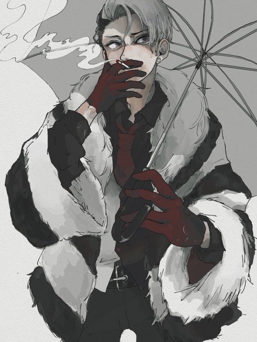 #ツイステファンアート 雨の日に中庭で煙草吸ってるクルーウェル先生に会いたいと思います!!!!