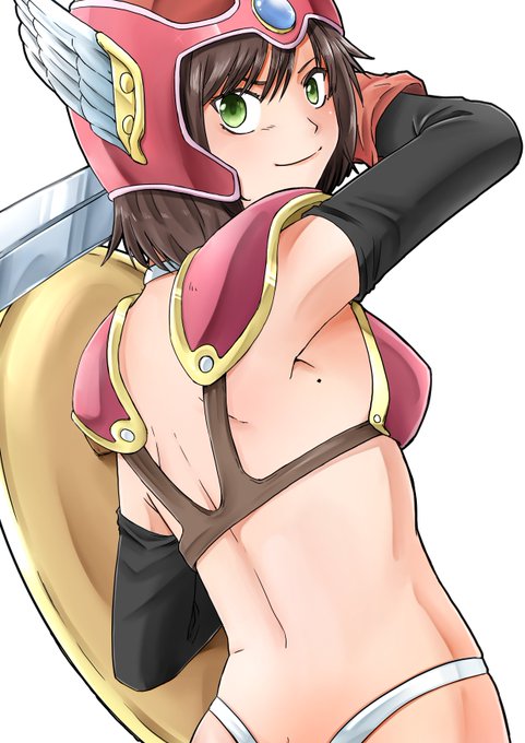 ちゃんまりのドラクエ3コスプレファンアートも気づいたら残り4職になっていたので、折角なら全部描こうと思いました。 最初は戦士。 戦士はアレだなぁ。 すげー格好だなぁ…… 元のデザインが髪が長い理由がよく分かったよ。 ショートカットだと隠せる部分が少なすぎるねw #まりんちゅアート
