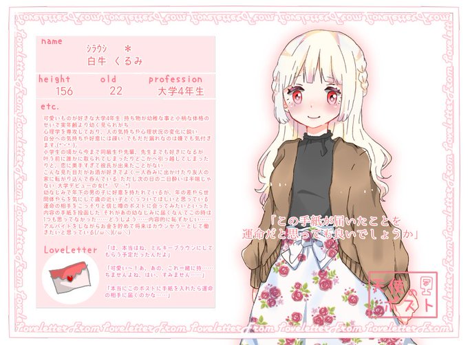 こちらの素敵な企画[@tenpos_TL] 様に初めまして!1人目を参加させていただきます💌
