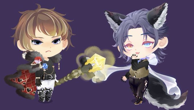 ホイッ。半ズボンであることを優先させたのでだいぶ無理矢理。 慎くんのロッドは鍵であることが重要なら素直に鍵持たせたほうがいいかな〜。あも アリスガチャまじめに引いてなかったのでドリンクミーボトル持ってませんでした…