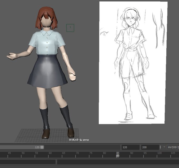 女の子モデリング(リグなし
