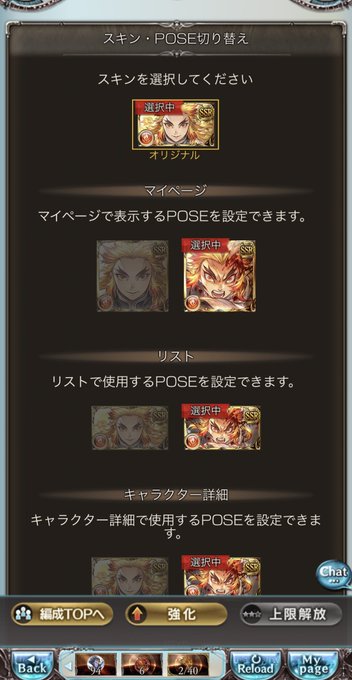 スキンに設定できるの険しい顔だけか、左上の横顔の方が好みなんだけどな