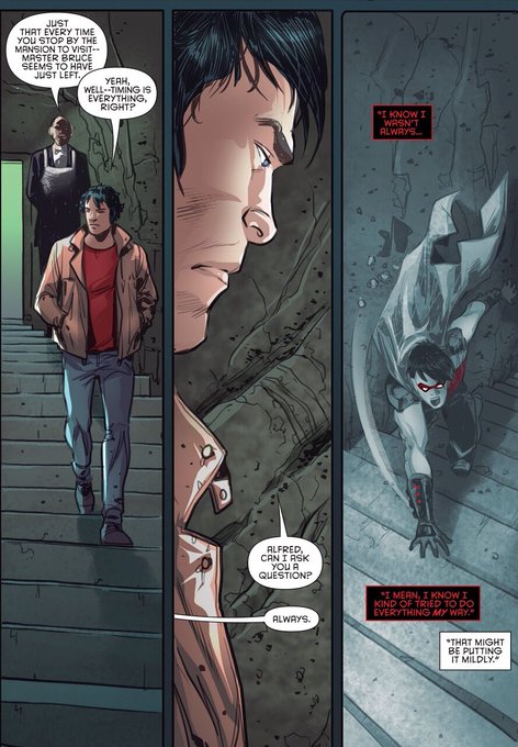 ビザロは危険な存在かもしれない…連れて来たのは過ちだったのか?って迷うジェイソンが相談に行った相手がアルフでしかもその内容がビザロと自分を重ねて「バットマンは俺を引き受けたことを…俺を信じたことを後悔しただろうか…俺は彼を失望させたと思うか?」っていうのがなんかもう。も〜〜〜