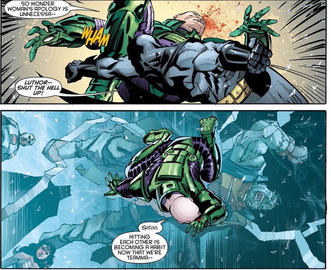 Batman and Robin #39でシャザムが「俺はねー君の体を取り戻そうとするバットマンの尻を二度も救ったんだ。そして感謝のパンチを顎にもらった。みんなの前で」っていうのRobin Rises Omega の時のことだったんだね。ルーサーはついでに殴られた感がある