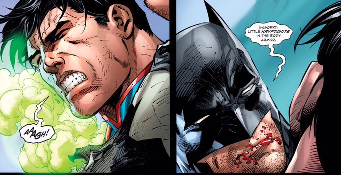 スプス「バットマン!…って間一髪抱きとめたけどなんかスーツの穴からガスが!キッツ!しみる!」バッツ「ご、ごめん…ボディアーマーにちょっとクリプトナイトいれてるの…」って何対策だよ… スプスにスーツを破かれるような場面を想定して……?