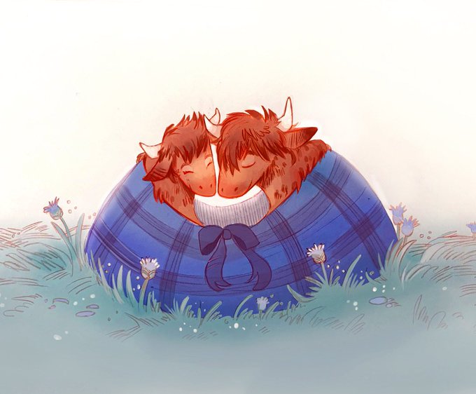 Cuddling Scottish highlanders. I love the way their hair covers their faces. #ArtistOnTwitter #scotland #cute #childrensbooks