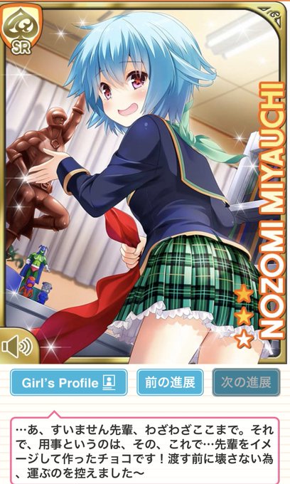 @nikoama_25 ただいま引用RTに気付きました💦 こちら特訓前のカードでして、数ある出番の中で唯一髪を結んだまま眼鏡を外している姿なんですよ。 セリフもどれも清美のPa度合いの高いものとなっており、超☆面白可愛いのでよかったら触れてみてくださいね!