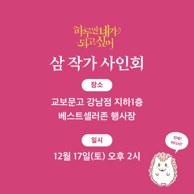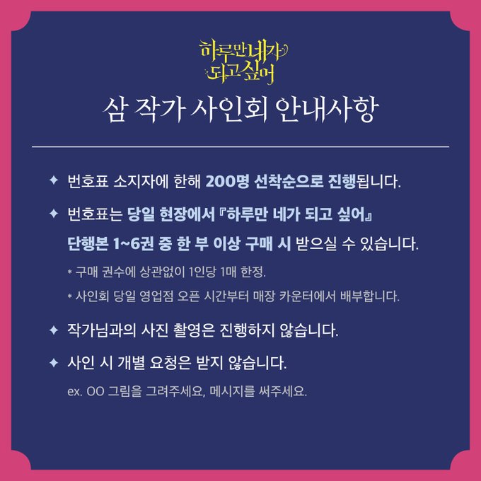 #하루만네가되고싶어 5, 6권 출간기념 삼 작가님의 사인회를 진행합니다.🎉