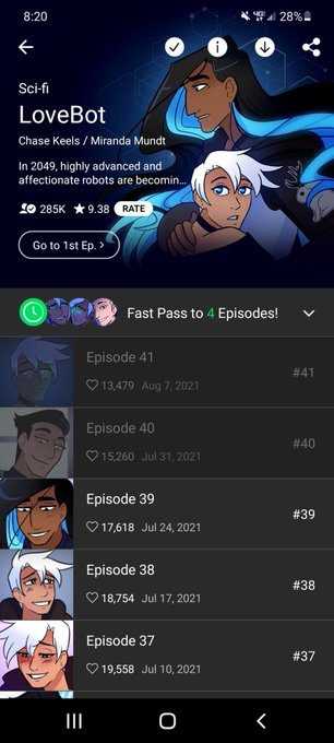 Tysm everyone for 285k subs on @lovebot_webtoon !! 🥺🥺💖 chase and I really appreciate it!!! (Also I rly like how the lighting in 41 and the next couple eps after that turned out 🥰)