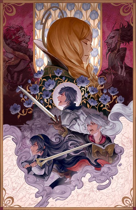 #PortfolioDay Heyy I'm Munette and I love incorporating florals/decors/ornaments in my artworks! I'd love to make more poster/cover works, and I also sell merch in conventions/online!