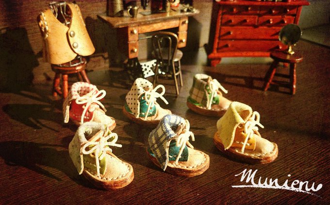 @Lupopo_cafe いつもありがとうございます!レザーで全長15mmのブーツや、最小3mmのブーツなどを作っています。革に限らず色々な素材で楽しく制作しています。いろんな人と仲良くなりたいので、気軽にフォロー、リプください!