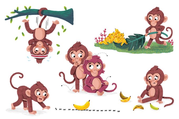 Looking for the perfect banana. Another sneak peek at one of my favourite spreads from a recent picture book I worked on.