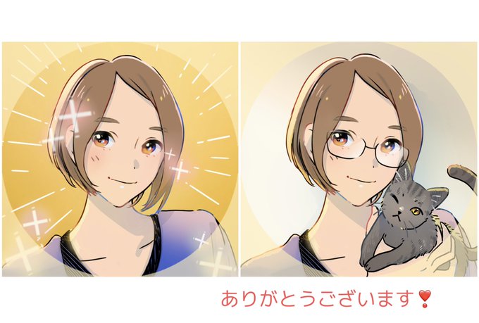 あゆさま(@yuyu_Ayumi_Goto )の開運✨アイコン、目力があると好評いただきました❣️ポートレート風のメガネ+猫ちゃん差分も。いつか表情差分を作れたらいいな〜と思案中。お礼にココナラ攻略のコツ教えて貰いました🥰