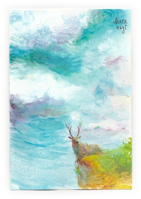 #1413 鹿 2019 (10.0cmx14.8cm) 風に乗って、草の匂いがします。 #ムラナギ
