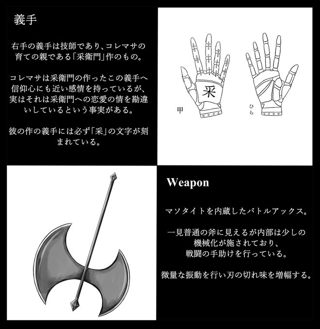 こちらの企画【@LeifThrasir_TL 】に二人目参加させていただきます。 義手を持つオーガの女性です。事前に所属部隊をいただいております。 よろしくお願いいたします。 #レイスラ_CS #レイスラ_アシュガルドCS