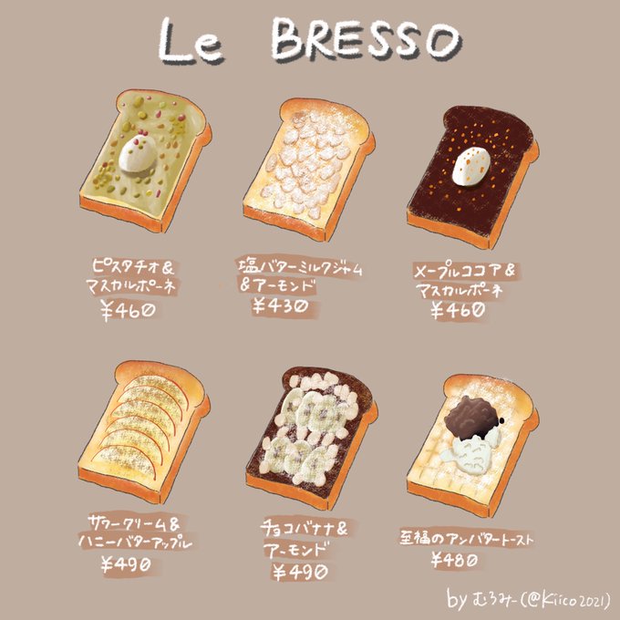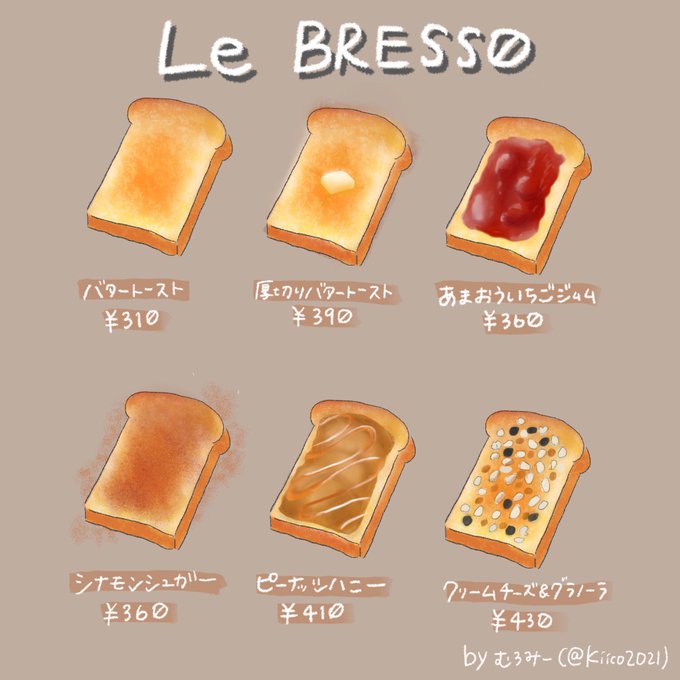 昨日行ったパン屋さん「Le BRESSO 福岡浄水通店」のトーストメニューをiPadで描いた😊