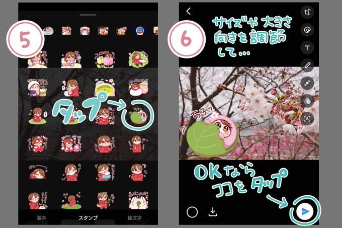 LINEスタンプを写真に貼り付ける機能を知らない人も多いよね!ということでだいたいの手順をのせました🎵 (コメント欄に手順詳細あります💡)