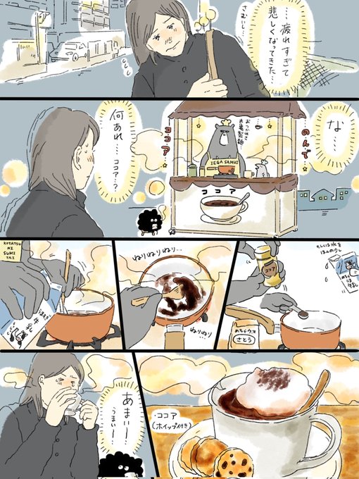 疲れた人に夜食届ける仕事56 寒い日の練るココア☕