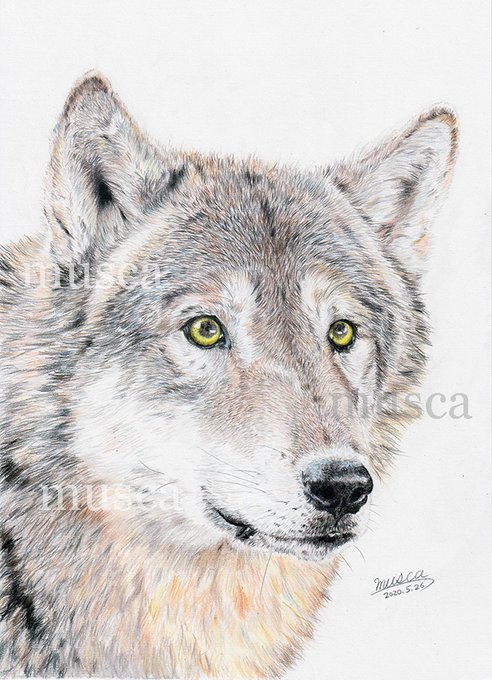 #オオカミ #色鉛筆画