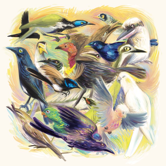 The biggest paintings I did for my show.. These are all birds I saw in my back/front yard growing up. If anybody wants to, pick a bird and I’ll tell you the species and a memory I have about it! I really like.. talking about birds...