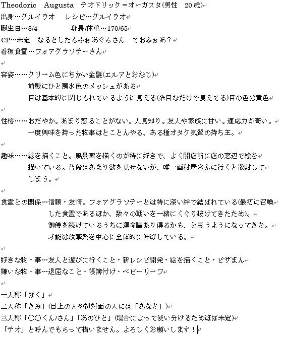 参考までに①エルアの御侍プロフ・テオの設定・ローレルのキャラシ