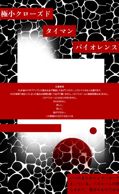 CoC「BATHROOM」 探索者は2畳ほどのユニットバスに閉じ込められます。 強めの暴力表現があります。 調節次第公開するぜ✌️