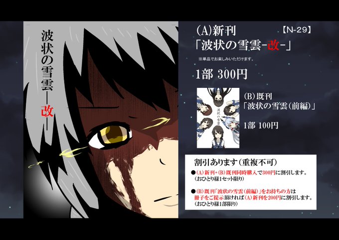 砲雷撃戦、明日ですね。 新刊の吹雪型本と若干ゃ既刊置いてあります。 割引あります。 サンプルはPixivにありますのでご覧ください。 https://t.co/4aeuoJmPEp スペースは【N-29】 サークル「BlackVillage」です。 よろしくお願いします。