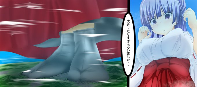 巫女さんが大蹂躙します( ✌*'ω')✌ #サイズフェチ #巨大娘