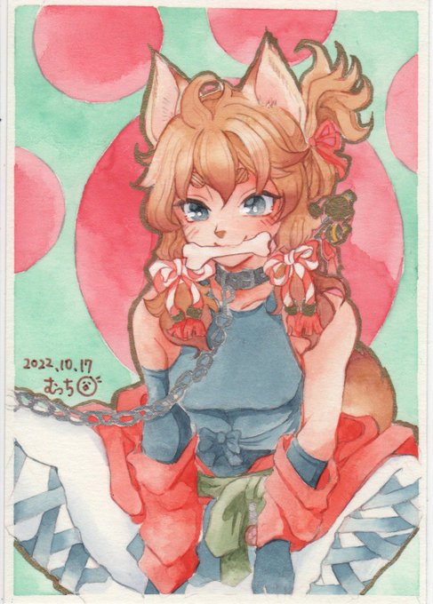 透明水彩でケモミミ麻呂眉描いています