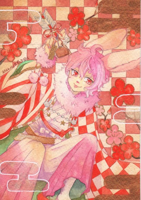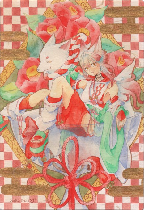 透明水彩や顔彩を使ってケモミミくんちゃんを描いてます