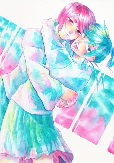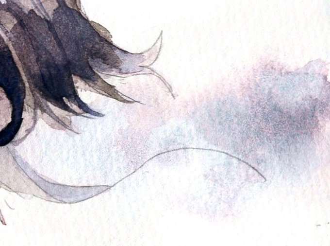 スキャンするとなかなかわかりにくいのですが、ピンクっぽい色と青緑っぽい色がモヤヤって出たり、絵の具乾いた後にじんわり青が出てきたりして楽しかった…