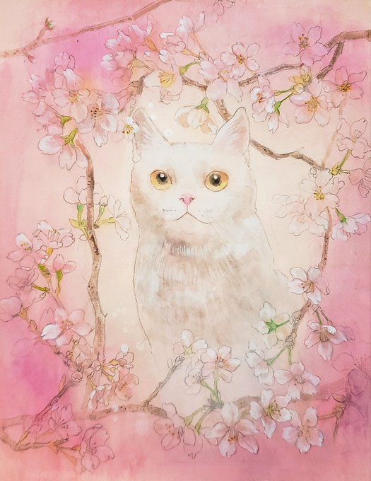 猫を中心に作品を作ってます。 #桜 #水彩画で暖かくなろう #絵描きさん交流会 #絵描きさんフォロバ100 #猫好きさんと繋がりたい