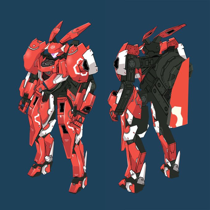 上半身の黒い部分のディテールを描き込んだ。あとは下半身と背中に背負ってるパーツだけだぁ。