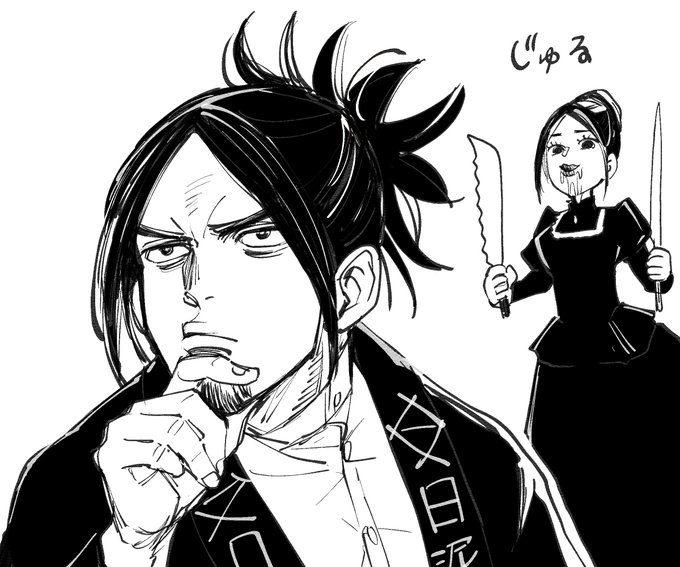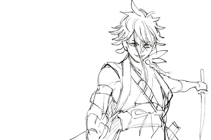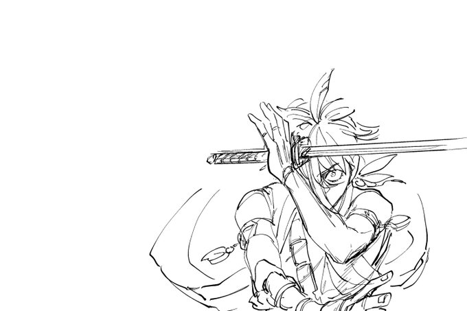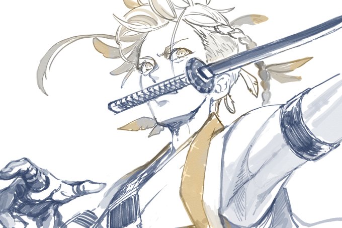 素手で戦うことが得意すぎる治金丸くん、ついつい刀咥える、の絵です