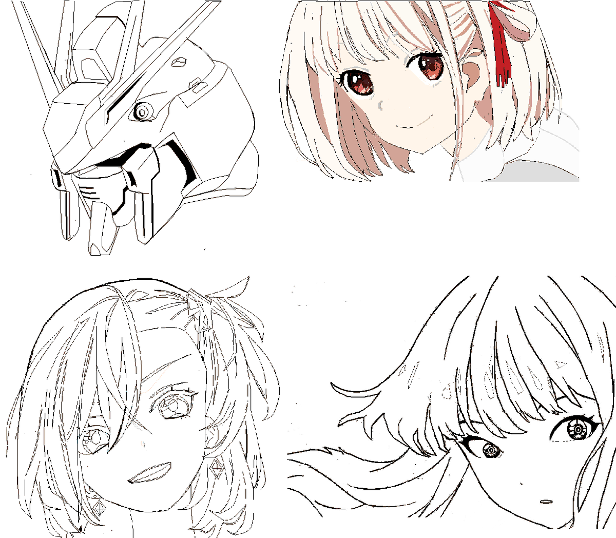 #芦澤サキ リコリス・リコイルの 錦木 千束の原画を見ながら頭部を改変してサキさんの頭部にしたのですが見ながら描いているので 千束の頭部の絵は原画と重ならないです