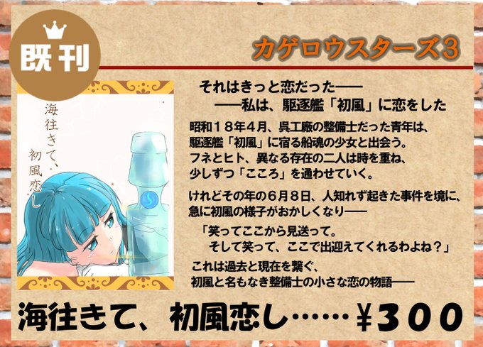 また、初回カゲスタで頒布した初風本も記念に少数再販します。
